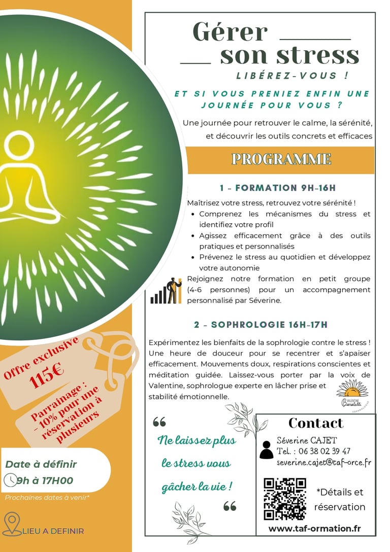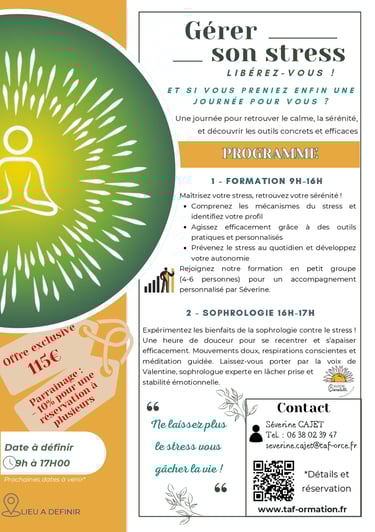 Formation unique "Gérer son stress" les lundi 17 & mercredi 26 mars à Enghien-les-Bains, suivie d' 1h de sophrologie, au tarif exclusivement réservé aux particuliers de 115€ !